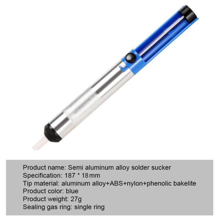 Pour réparer vos cartes électroniques ou retirer des composants soudés, cette petite pompe à dessouder manuelle est indispensable ! On chauffe la soudure avec un fer, puis on appuie sur le bouton de la pompe : un coup de vide aspire l'étain fondu et libère la broche. Simple, efficace, pas cher. Neuf, sous blister. Type : Pompe à dessoudage manuelle | Origine : Chine. Un outil de base pour tout bricoleur en électronique, maker, ou réparateur de petits appareils. Bien plus propre que la tresse à dessouder pour certains usages. À avoir dans sa panoplie de soudure.