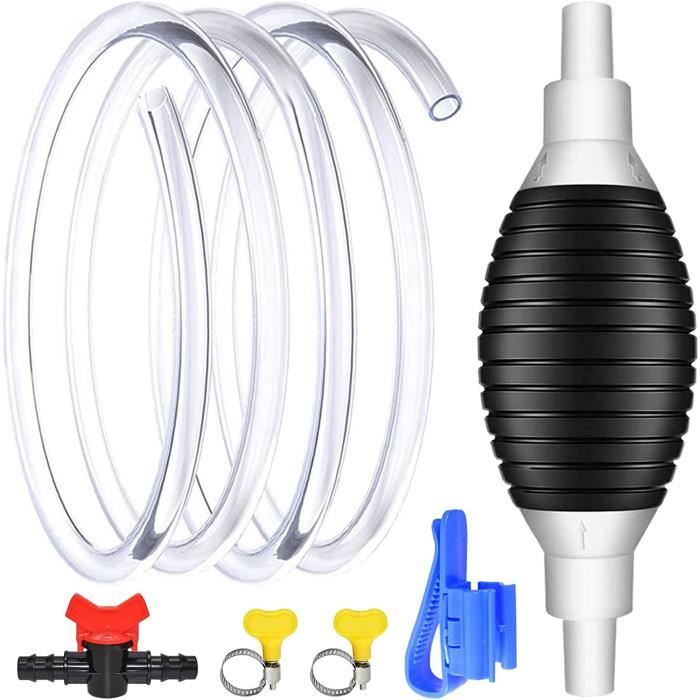 Cette pompe à siphon manuelle est un outil super pratique et portable. Elle vous permet de transférer facilement de l'essence, du gasoil, de l'huile ou d'autres liquides d'un réservoir à un autre, sans avoir à les porter ou à les renverser. Idéale pour la voiture, le bateau, la moto, la tondeuse, ou pour vider un jerrican. Fonctionne sans électricité, juste avec le mouvement de la main. Marque Geartronics, produit neuf dans son emballage. Un must-have pour tout bricoleur, camping-cariste, marin ou propriétaire de jardin. Beaucoup plus sûr et propre que de sucer un tuyau ! Rangez-la dans votre coffre, elle pourra vous dépanner à tout moment. Simple, efficace et pas cher.