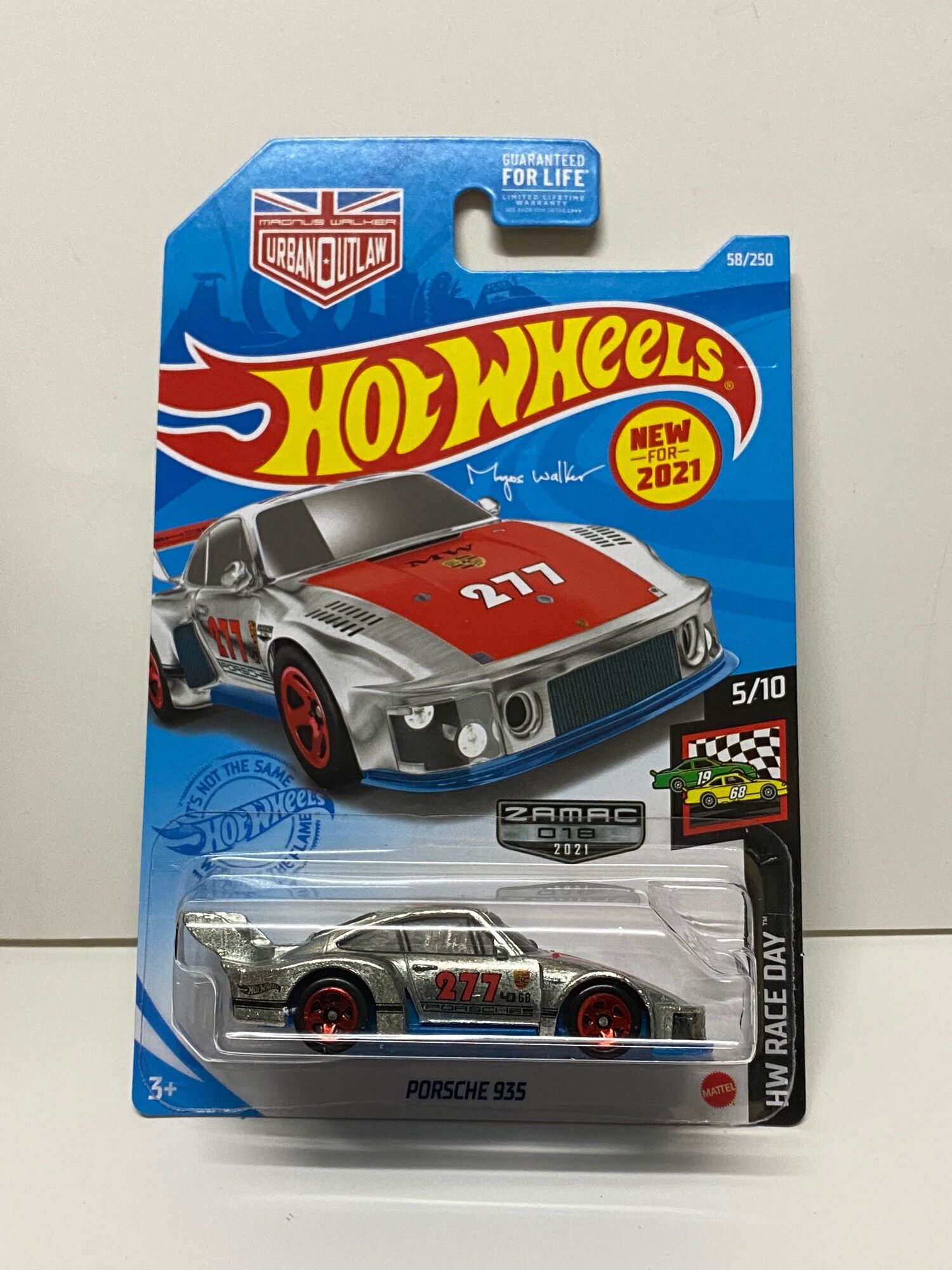 Une édition spéciale Hot Wheels qui va faire plaisir aux collectionneurs ! C'est la Porsche 935 (voiture de course légendaire) en finition Zamac (zinc, aluminium, magnésium, cuivre) – c'est-à-dire métal brut brillant sans peinture, juste avec les décalcomanies. Elle fait partie de la série 'Replay the Classics' pour les 80 ans de Hot Wheels, sortie en 2025.
