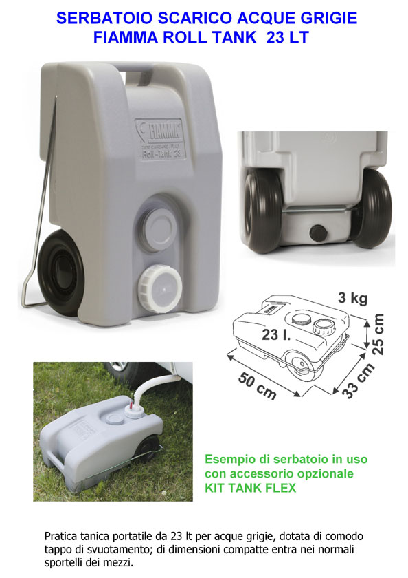 Besoin d'un réservoir d'eau supplémentaire pour votre camping-car, fourgon ou caravane ? Le Roll Tank FIAMMA de 23 litres (ou 23W) est parfait. Il est neuf, en emballage d'origine. De couleur grise, il est pratique pour transporter de l'eau propre ou récupérer les eaux grises. Facile à rouler grâce à sa forme et ses poignées, et à ranger à plat quand il est vide. Marque FIAMMA, bien connue dans l'univers du camping-car. Référence : 02428A01. EAN : 8004815025090. Robuste et étanche. Idéal pour prolonger votre autonomie en pleine nature ou lors d'un festival. Pensez à le nettoyer régulièrement. Un accessoire très utile pour les voyageurs en van ou les campeurs qui veulent plus de confort sans installation fixe. Livré prêt à l'emploi.