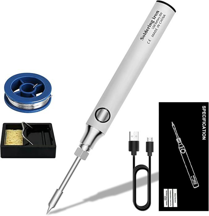 Plus besoin de fil pour souder ! Ce kit de fer à souder sans fil est ultra pratique. Il se recharge via un câble USB Type-C (comme votre smartphone) et fonctionne sur batterie, donc vous pouvez l'emporter partout. La pointe chauffe vite et la température est réglable entre 300°C et 450°C pour s'adapter à tous vos travaux électroniques. Parfait pour les petites réparations, la création de bijoux, les modélismes... Le tout est compact et léger. Marque non spécifiée (générique), mais il fait bien le job ! Produit neuf dans sa boîte. Idéal pour les débutants comme pour les bricoleurs confirmés qui veulent plus de liberté de mouvement. Pensez à bien le recharger avant utilisation ! Un outil malin et moderne.