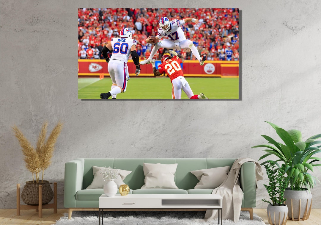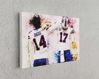 Fan des Buffalo Bills et de Josh Allen ? Ce poster (ou toile canvas selon option) est fait pour vous ! Représentation artistique et abstraite du quarterback star, parfaite pour afficher votre passion dans votre salon, bureau, chambre d’ado ou cave aménagée. Format vertical, couleurs principalement noires, style moderne qui s’adapte à beaucoup de décos. Matériau canvas de qualité, impression nette. Neuf dans son emballage. Convient aux enfants, ados et adultes. Accrochez-le seul ou créez un mur thématique avec d’autres joueurs. Fabriqué aux États-Unis. Un super cadeau pour un anniversaire, Noël, ou pour se faire plaisir. Que vous soyez de Buffalo ou juste admirateur du jeu d’Allen, cette pièce ajoute une touche sport et style à n’importe quelle pièce. Livraison prête à encadrer ou à fixer.