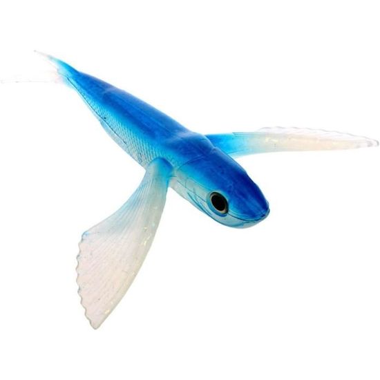 Pour la pêche au gros en mer (big game fishing), ce leurre en forme de poisson volant est un classique qui fait des merveilles. D'une longueur de 4 pouces (environ 10 cm), il imite à la perfection ces petits poissons que les grands prédateurs adorent. Sa couleur bleue est très attractive dans l'eau claire. Conçu pour la traîne (trolling), il crée un sillage et des vibrations irrésistibles pour le mahi-mahi (dorado), le thon, le marlin, l'espadon voire le wahoo. En caoutchouc souple, il a une nage très réaliste. C'est un leurre dit \dépliant\ ou \drifter\, souvent utilisé en complément d'autres leurres. Parfait pour les pêcheurs en haute mer depuis un bateau. Un seul leurre par pack, neuf dans son emballage. Si vous visez les trophées, ce petit leurre pourrait bien vous amener la prise du siècle ! Préparez votre canne et votre moulinet, l'aventure commence.