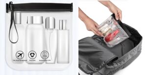 Vous voyagez souvent et en avez marre de fouiller dans vos valises à la sécurité ? Ce lot de 3 sacs transparents GLAMZA est la solution ! En PVC solide et waterproof, avec fermeture zip. 3 tailles : petit (180x40x140mm), moyen (240x50x200mm), grand (300x100x220mm). Parfaits pour ranger vos cosmétiques, maquillage, produits liquides, trousse de toilette, etc. Conformes aux règles de l’aéroport pour les liquides en cabine. Marque GLAMZA, EAN 5060583301876, fabriqué en Chine. Neufs avec étiquettes. Pratiques, faciles à nettoyer et à organiser. Voyagez léger et bien organisé !