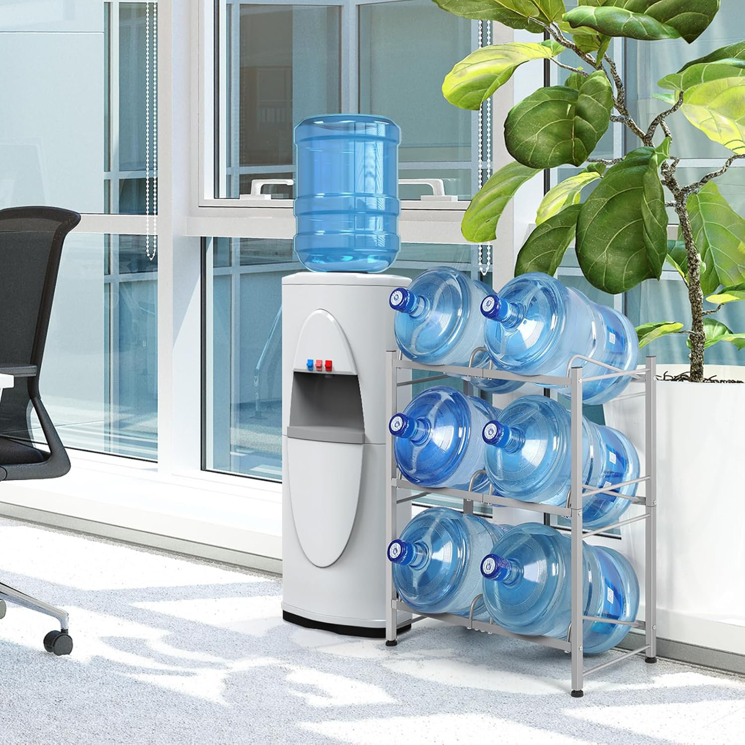 Fini de soulever les lourds bidons d'eau de 19 litres (5 gallons) ! Ce support pratique et pliable vous permet d'installer votre bidon standard et de servir l'eau facilement grâce à ses DEUX robinets. Fonctionne par gravité, donc aucune électricité n'est nécessaire : placez le bidon plein sur le support, inclinez-le, et ouvrez le robinet. Parfait pour le bureau, l'atelier, la salle de sport, les événements en extérieur, ou la maison. De couleur bleue, il est en métal (probablement) avec une structure stable. Dimensions produit : environ 22 cm (H) x 24 cm (L) x 22 cm (P). Poids léger : 500 g environ. Modèle WJH-001. Produit neuf, livré avec les deux robinets. Se plie pour un rangement compact. Une solution économique, écologique et ultra pratique pour avoir de l'eau fraîche à disposition en permanence. UPC 7445007241279.
