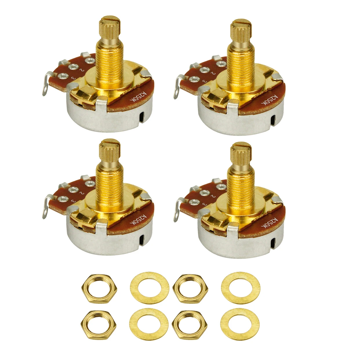 Salut les guitaristes bricoleurs ! Tu cherches à remplacer les pots de ton instrument ou à customiser le wiring ? Ce lot de potentiomètres est ce qu'il te faut. Tu auras différentes valeurs : A500K (linéaire), B250K et B500K (logarithmiques), ce qui correspond aux valeurs classiques pour les tonalités et volumes sur les guitares électriques. Ils sont en métal, donc solides, et pèsent environ 10g chacun. C'est du neuf, bien sûr, vendu dans son emballage d'origine. La marque est générique, mais ça fait parfaitement l'affaire pour des projets de réparation ou de modification. Parfait si tu veux upgrader les tiens qui grésillent, ou si tu montes une guitare DIY. Attention, vérifie bien les valeurs dont tu as besoin pour ton circuit (les Les Paul utilisent souvent du 500k, les Strat du 250k par exemple). Pas d'adaptateur ou de câble inclus, c'est juste les pots. Un essentiel dans la boîte à outils de tout guitariste qui aime toucher à l'électronique de sa gratte !