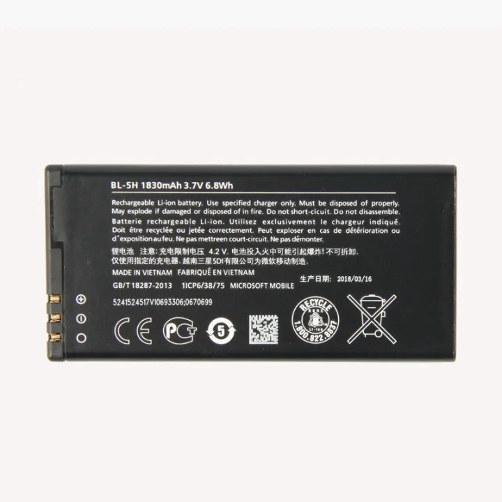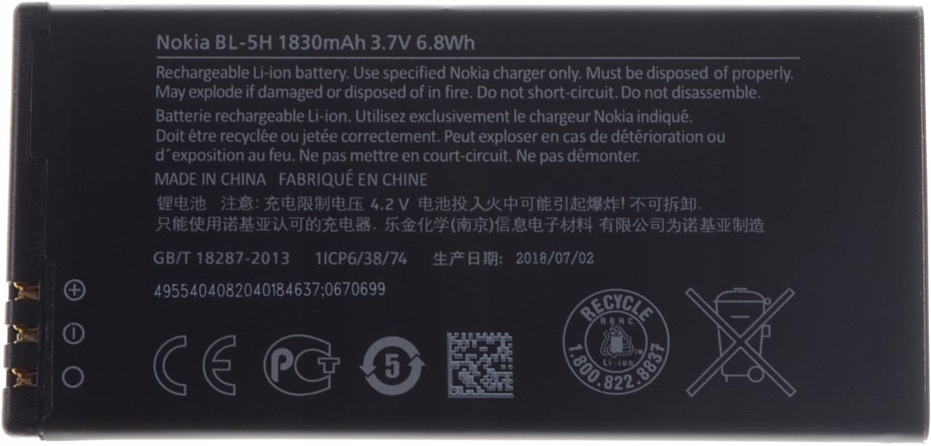 Votre Nokia Lumia 630, 635, 636 ou 638 a une batterie qui ne tient plus la charge ? Remplacez-la par cette batterie Nokia BL-5H originale ! Elle offre une capacité de 1830 mAh (6,8 Wh) avec une tension de 3,7 V, pour redonner de l'autonomie à votre smartphone. C'est une batterie Li-ion rechargeable, en aluminium, légère (35 g) et de dimensions 78 x 38 x 5 mm. Fabriquée en Chine mais conforme aux standards OEM, avec une garantie fabricant de 6 mois. Elle se fixe par clip dans le compartiment batterie et dispose de 3 connecteurs. Parfaite si votre téléphone s'éteint trop vite ou si vous avez besoin d'une pièce de rechange fiable. La batterie est neuve, dans son sachet polybag. EAN : 0702756655663. Une solution économique pour prolonger la vie de votre Lumia sans changer de téléphone !