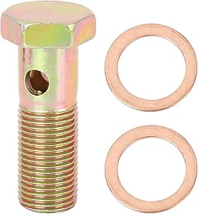En mécanique auto, surtout sur les systèmes de freinage hydraulique, le boulon banjo est un petit élément crucial ! Celui-ci a un filetage métrique M16 avec un pas de 1.5 mm. Il sert à connecter une durite de frein (avec un œillet banjo) à un étrier de frein, un maître-cylindre ou un raccord, en permettant à l'huile de frein de circuler à travers le boulon lui-même. Il est annoncé comme universel, mais vérifiez toujours le filetage requis par votre véhicule (M16x1.5 est courant). Marque uxcell. Attention, comme beaucoup de pièces métalliques, il est soumis à l'avertissement californien Prop 65. Vendu neuf. Un incontournable pour la réparation ou la modification des circuits de freinage.
