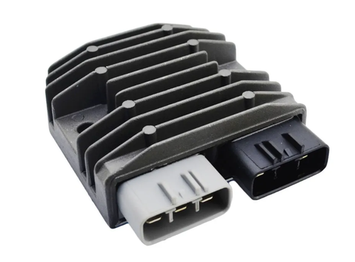 Votre Triumph Rocket III (modèles 2005 à 2010) a des soucis de charge de batterie ou d'éclairage ? Ce régulateur-redresseur de tension, référence FH012AA, est probablement la solution. Il remplace la pièce d'origine et est aussi compatible avec certains modèles Yamaha (comme le R1, FZ1, FJR). Il est neuf, sous emballage, prêt à être installé. Ce petit boîtier gris est crucial : il convertit et régule le courant alternatif de l'alternateur en courant continu pour recharger la batterie et alimenter les circuits électriques de la moto. Si votre batterie se décharge trop vite, si les phares clignotent ou si vous avez des pannes électriques bizarres, vérifiez ce régulateur. Marque Teram Loisirs, qualité correcte. Installation assez simple pour qui sait démonter quelques carénages et brancher un connecteur. Un essentiel pour garder votre Rocket III fiable sur la route. Livraison soignée, pièce neuve. Parfait pour les motards bricoleurs !
