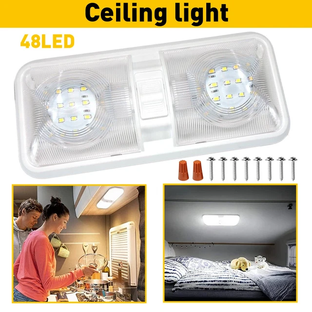 Pour éclairer l'intérieur de ton camping-car, fourgon aménagé, caravane, bateau ou même une vieille voiture, ces plafonniers LED 12V sont économiques et efficaces. Lot de 2. Chaque module contient 48 LEDs SMD, lumière blanche (froide ou chaude à vérifier). Alimentation 12V DC, donc branchable directement sur la batterie ou le circuit éclairage du véhicule. Montage en surface, avec interrupteur intégré probablement. Marque Xukey. Neuf sous emballage. Consommation faible, éclairage puissant, durée de vie longue. Parfait pour remplacer un vieux plafonnier halogène ou ajouter un point lumineux. Garantie constructeur. Installation simple avec deux fils (+ et -).