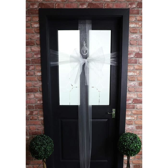 Décorer ta porte d'entrée pour Noël, un mariage, ou une fête ? Ce nœud géant prêt à l'emploi est parfait ! Il est déjà noué (pré-tied) avec un joli diamant knot, en organza mesh (tissu fin et brillant). Dimensions du nœud : environ 60 cm x 80 cm. Mais le meilleur, c'est les rubans EXTRA-LONGS : ils font 7,5 mètres de long ! Tu peux les draper magnifiquement autour de ta porte ou les laisser pendre avec élégance. Marque Trimming Shop, fabriqué au Royaume-Uni. Plusieurs couleurs disponibles (rouge, argent, blanc, or... vérifie l'option). Parfait pour une décoration festive instantanée, sans avoir le talent du nouage. Produit neuf dans son emballage. Installation ultra-rapide, il suffit de l'accrocher. Livraison avec le nœud plié soigneusement. Transforme ton entrée en un clin d'œil. Idéal pour les particuliers, les commerces, ou les salles des fêtes.