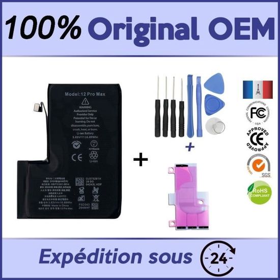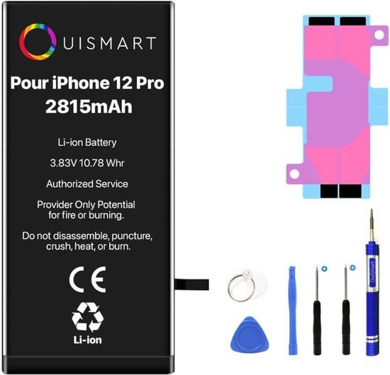 Votre iPhone 12 Pro Max a une autonomie qui baisse ? Cette batterie de remplacement neuve est faite pour vous ! Elle est compatible avec les modèles iPhone 12 Pro Max (références Apple A2342, A2410, A2411, A2412). Le kit comprend la batterie elle-même ET les outils nécessaires pour effectuer le remplacement vous-même (spudger, tournevis, etc.). La batterie est de qualité, avec une capacité nominale conforme aux originaux, pour redonner à votre smartphone une seconde vie. Attention : ceci est un produit générique (sans marque Apple), mais conçu pour une compatibilité et une performance optimales. Fabriqué en Chine, neuf et emballé.