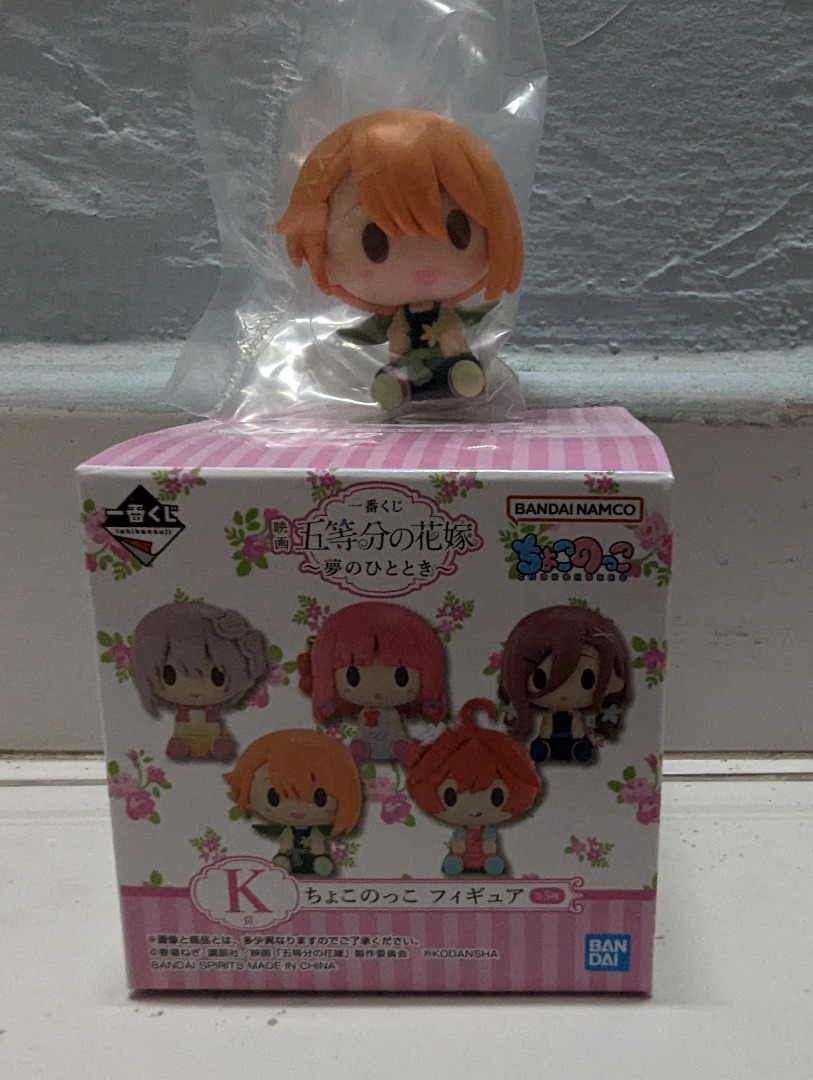 Fan des \Quintessential Quintuplets\ (Gotoubun no Hanayome) ? Ce lot est une pépite ! Il contient les 5 figurines des sœurs Nakano (Ichika, Nino, Miku, Yotsuba, Itsuki) issues de la loterie Ichiban Kuji \With You.\ Chaque figurine en PVC peint capture le charme et la personnalité d'une des quintuplées, dans des poses mignonnes et dynamiques. Hauteur environ 10-12 cm chacune. Neuf, dans leur condition d'origine (peut-être sans boîte individuelle selon l'annonce). Marque : Bandai | Série : The Quintessential Quintuplets | Matériau : PVC | Origine : Japon. Parfait pour compléter une collection d'anime, décorer une étagère ou offrir à un fan inconditionnel. Une occasion d'avoir les cinq filles réunies sans avoir à gagner plusieurs fois à la loterie !