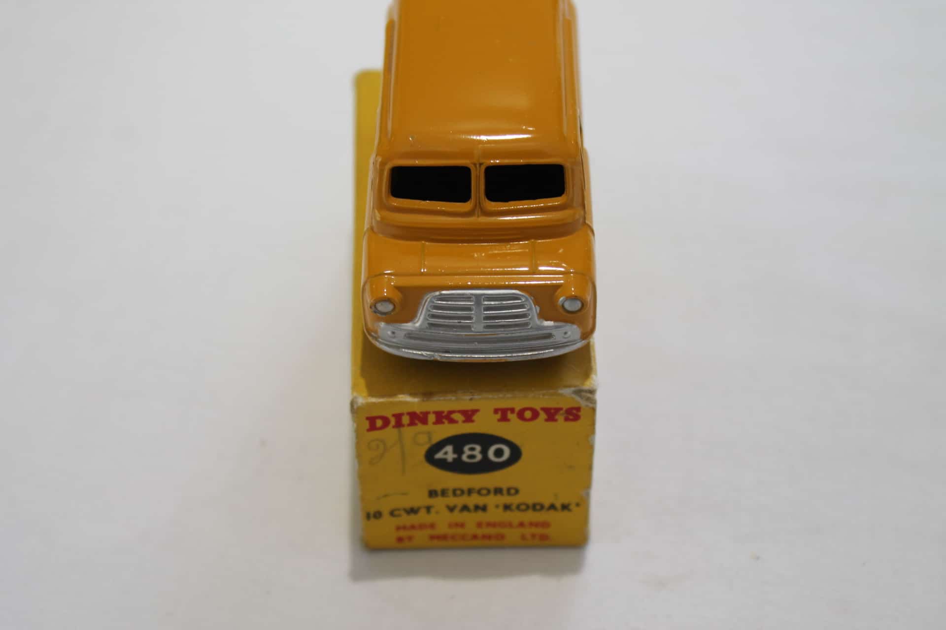 Elle est neuve, jamais sortie de sa boîte, en parfait état. C'est une reproduction fidèle du modèle original #480, au 1/43, avec la célèbre livrée orange et jaune de Kodak. En métal diecast et plastique, elle a un poids et un fini qui rappellent les vieux Dinky.