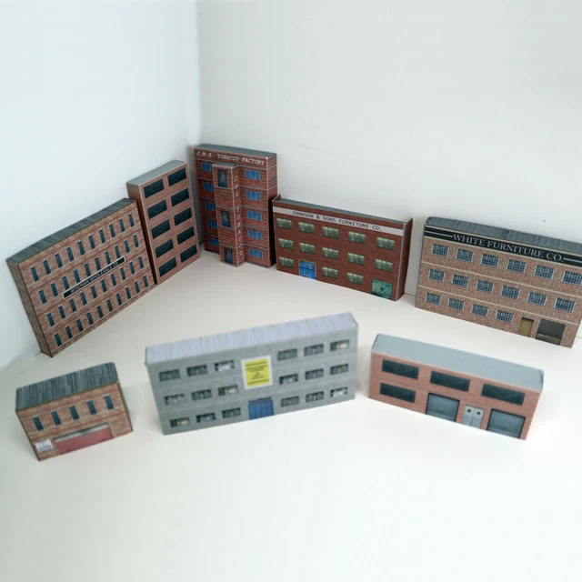Pour agrémenter votre réseau de train miniature à l'échelle N (1/148), ce pack de 8 bâtiments en carton est super ! Il contient des magasins et des maisons en \low relief\ (façades à placer contre un mur), ce qui donne beaucoup de vie sans prendre trop de place. Les bâtiments sont en carton épais de 250 gsm, avec des impressions photo-réalistes. À vous de découper, plier et coller pour les assembler (self-assembly). Fabriqué au Royaume-Uni par scalemodelbuildings.co.uk. Parfait pour créer un quartier commerçant ou résidentiel réaliste. Produit neuf. Une solution économique et créative pour les modélistes débutants ou confirmés !
