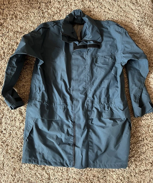 Une vraie veste d'armée, celle-là ! Issue des surplus de la Royal Air Force britannique, cette parka est en Gore-Tex MVP – donc totalement imperméable et respirante. Coupe smock pratique, couleur bleue RAF typique.