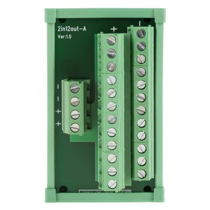 Bonjour aux automaticiens, électriciens et bidouilleurs d'électronique ! Cette **carte module à monter sur rail DIN** est un organisateur de distribution de signaux ou d'alimentation basse tension. Elle offre **12 positions de connexion** (bornes probablement à vis). Les spécifications techniques : **Tension nominale 48V, courant nominal 1A par borne**. L'espacement entre les bornes (pitch) est de **5mm**, et l'espacement des pins sur la carte est de **2.54mm** (standard). Les cages et broches sont en **laiton** pour une bonne conductivité. Les dimensions de la carte sont d'environ **8 x 5 cm**. La marque est unbranded (générique). C'est parfait pour construire un petit tableau de contrôle, distribuer une alimentation 24V/48V à plusieurs capteurs/actionneurs dans un automate, ou organiser proprement vos câblages dans un projet électronique sur rail DIN. Cela évite le fouillis de câbles et les connexions peu sûres. Il faut la monter soi-même sur un rail DIN standard (35mm). Un accessoire simple, peu coûteux, mais qui donne un aspect pro à vos installations.