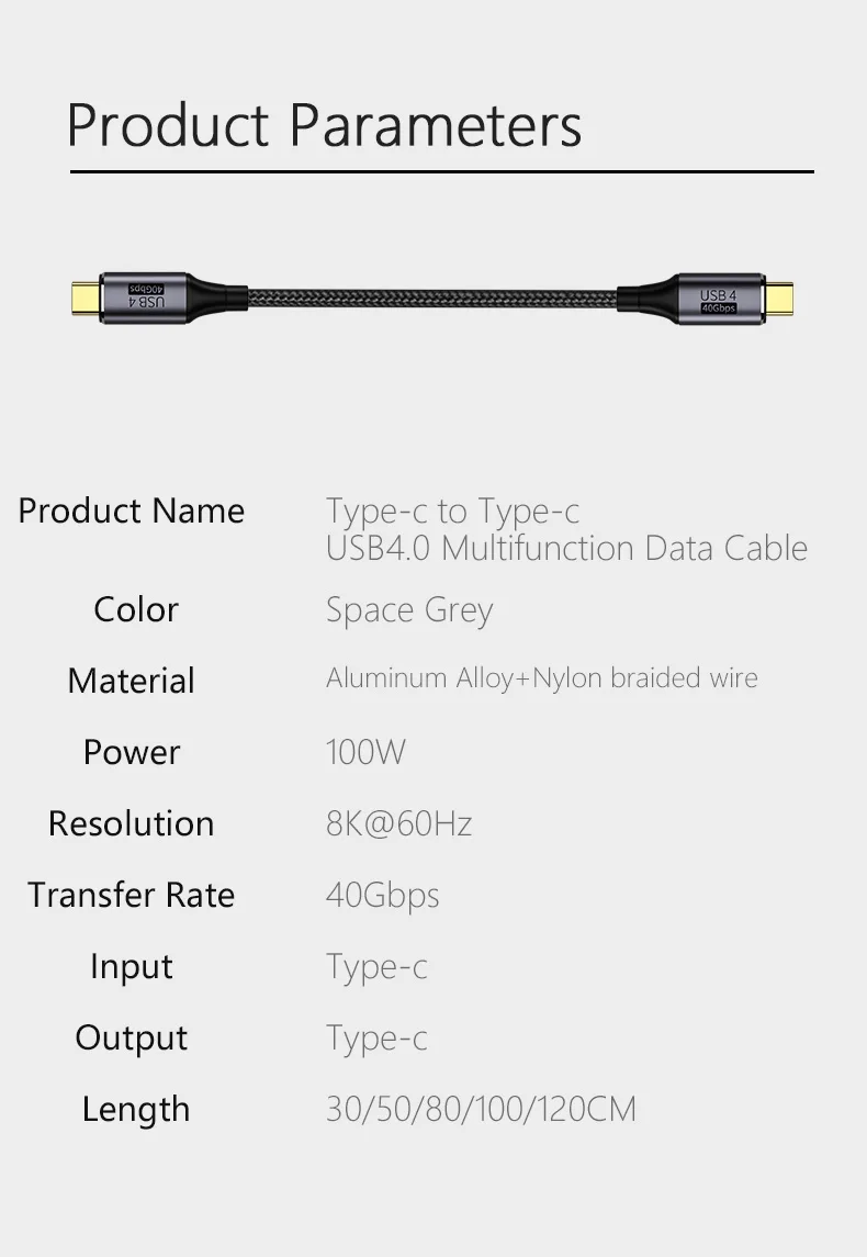 Ce câble USB4 gris offre des performances ultra-rapides : transfert de données à 40 Gbps, charge puissante jusqu’à 240W (5A) avec Power Delivery, et support vidéo 8K à 60Hz. Compatible avec une large gamme d’appareils : MacBook, MacBook Air, MacBook Pro, Dell XPS, Lenovo ThinkPad, Yoga, et bien d’autres. Parfait pour les professionnels créatifs, les gamers ou les utilisateurs exigeants qui veulent un seul câble pour tout faire. Neuf, dans son emballage d’origine. Couleur : gris. Courant de sortie : 4,7 A. Fabriqué en Chine. Idéal pour connecter vos moniteurs haute résolution, charger rapidement votre ordinateur portable et transférer des fichiers volumineux en quelques secondes. Un accessoire indispensable pour une installation bureau propre et performante !