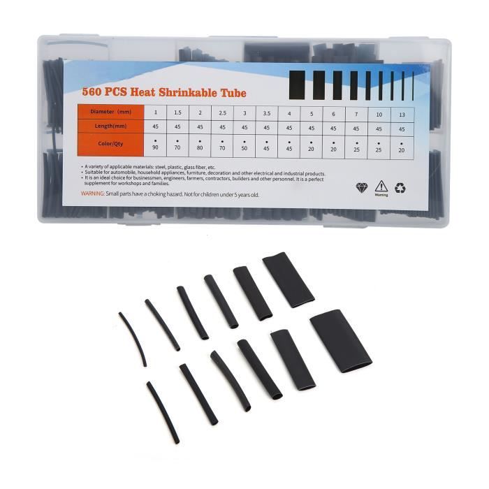 Ce tube thermorétractable noir est idéal pour isoler, protéger ou regrouper des câbles électriques, des connexions ou des petits composants. Avec un rapport de rétraction de 2:1, il se resserre parfaitement autour de l'objet quand on le chauffe (avec un pistolet à air chaud, par exemple). Diamètre intérieur nominal : 1/16\ (1,5 mm), longueur totale : 10 pieds, découpés en morceaux de 9\ pour plus de facilité. Matériau : polyoléfine flexible, résistant aux températures de -55°C à +125°C environ. Fabriqué en Chine, marque Salipt, livré neuf. Parfait pour les bricoleurs, les électriciens, les amateurs de modélisme ou de réparation électronique. Un essentiel dans ta trousse à outils pour des finitions propres et durables.