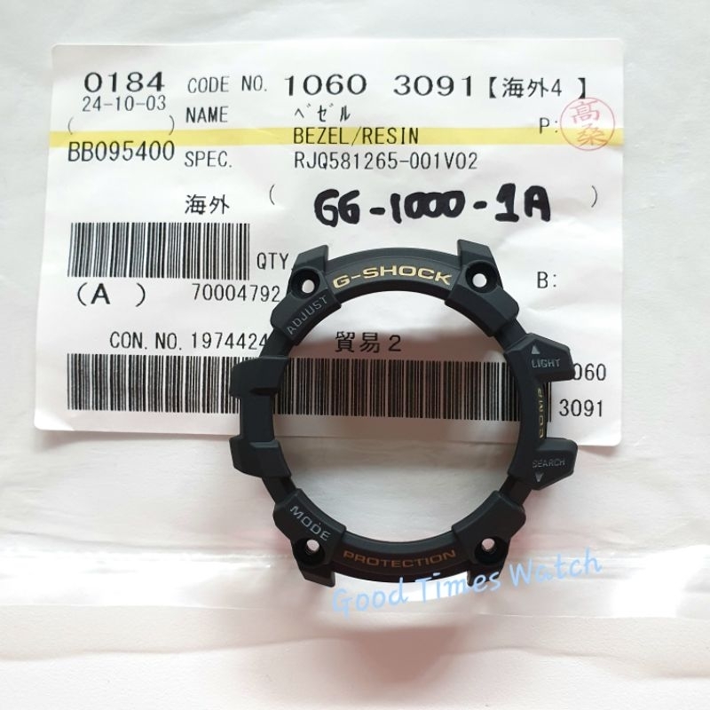 Salut les fans de G-Shock ! Ta lunette (bezel) en résine de ta Casio GG-1000-1A est abîmée, rayée, ou cassée ? Pas de panique, voici une lunette de remplacement. Elle est neuve avec étiquettes, dans son emballage d'origine (ou équivalent). Couleur : noir avec les inscriptions en couleur beige, exactement comme l'original. Matière : résine robuste, typique des G-Shock. Compatible avec les modèles GG-1000-1A et GG-1000. Marque Casio, donc c'est une pièce d'origine ou de qualité équivalente. EAN : 4251465500963. Le remplacement est relativement simple : il faut retirer la vieille lunette (parfois clipsée, parfois vissée) et mettre la nouvelle. Ça redonnera un look neuf à ta montre et continuera à protéger le verre. Livraison rapide, bien protégée. Garde ton G-Shock en état de combat !