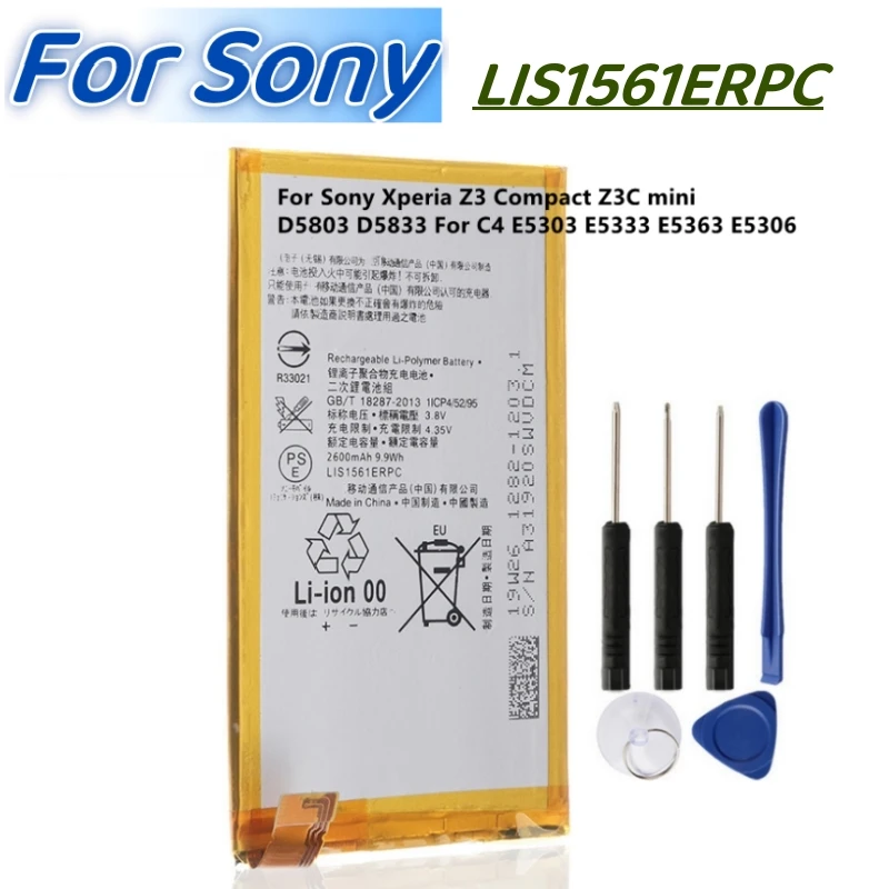 Votre Sony Xperia Z3 Compact (modèles D5803, D5833, M55w, SO-02G) ne tient plus la charge ? Redonnez-lui une seconde jeunesse avec cette batterie de remplacement ORIGINALE Sony ! Référence constructeur : LIS1561ERPC. Spécifications : 2600mAh, 3.8V, technologie Li-Polymer. Dimensions : 95 x 51 x 3 mm. Elle est neuve, dans son emballage, et le kit inclut même les petits outils nécessaires pour ouvrir le téléphone en toute sécurité (c'est un modèle étanche, l'ouverture demande de la minutie). Couleur gris aluminium. Fabriquée en Chine, garantie 6 mois. Attention, le remplacement de la batterie sur ce modèle n'est pas simple à cause de l'étanchéité. Il est recommandé aux bricoleurs expérimentés ou mieux, à un réparateur professionnel. Mais une fois fait, vous retrouvez une autonomie comme au premier jour !