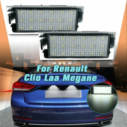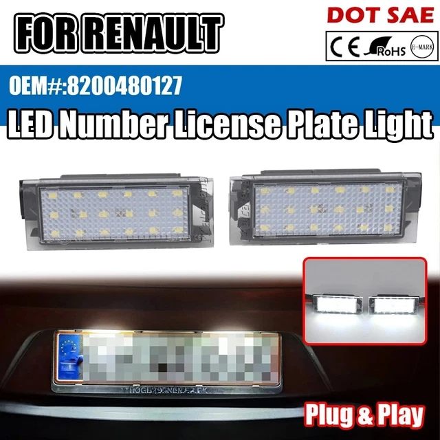 Salut ! Une paire de feux de plaque d’immatriculation LED, compatibles avec plusieurs Renault : Laguna, Mégane, Twingo, Clio, etc. Ils remplacent les vieilles ampoules halogènes par une lumière LED blanche (6000K), plus éclatante et durable.