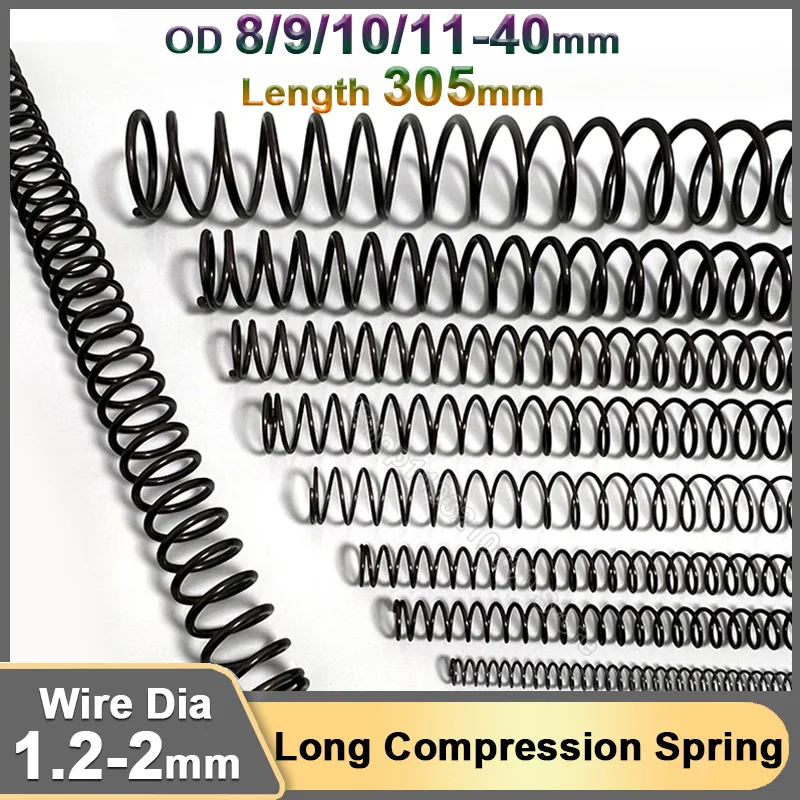 Ce ressort de compression hélicoïdal est disponible avec différentes options : diamètre du fil de 1.2 à 2.0 mm, diamètre extérieur de 8 à 35 mm, et une longueur fixe de 300 mm (soit 11.8 pouces). Produit neuf, générique, fabriqué en Chine. Parfait pour des applications mécaniques, industrielles, du bricolage technique, ou pour remplacer un ressort défectueux sur une machine, un outil, un véhicule, etc. Il faut bien vérifier les cotes dont vous avez besoin avant de choisir. Livré dans son emballage. Un classique des pièces de rechange universelles.