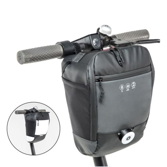 Pour transporter tes petites affaires sur ta trottinette électrique ou ton scooter sans avoir à porter un sac à dos, cette sacoche de guidon est idéale ! Elle a une capacité de 3 litres, et est en matériau rigide (coque EVA) recouvert de PU, donc elle garde sa forme et protège bien le contenu. Fixation par sangles velcro ou clips sur le guidon, installation en 30 secondes. Dimensions : environ 29 cm de haut, 13,5 cm de large, 15 cm de profondeur. Couleur noire. Marque générique. Parfaite pour y mettre un cadenas, un chargeur, des gants, un petit parapluie, ou ton téléphone. Pratique pour les trajets du quotidien en ville. Livraison sous film.