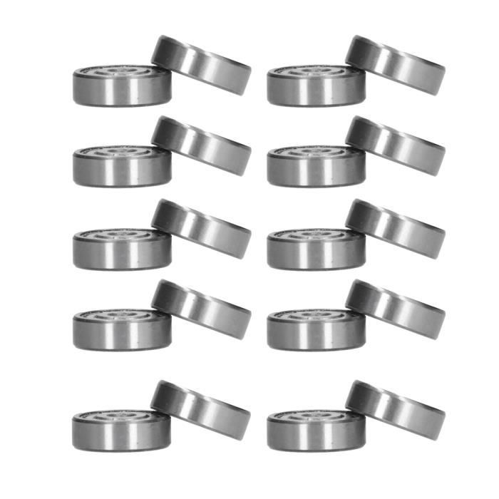 Un lot pratique de 20 roulements à billes tout petits, mais super utiles ! La référence c'est MR52ZZ. Les dimensions : alésage (trou intérieur) de 2 mm, diamètre extérieur de 5 mm, et épaisseur de 2,5 mm. Ils sont du type \rainuré profond\ et \double blindé\ - ça veut dire qu'ils sont protégés contre la poussière des deux côtés, parfait pour les applications où la propreté compte. Matière : acier chromé Gcr15, donc résistant à l'usure et à la corrosion. Couleur argent métallique. Marque : Uxcell, une marque connue pour les pièces détachées et composants. Le lot est neuf, dans son emballage d'origine (souvent une petite boîte ou sachet). EAN : 605322778110. Idéal pour réparer ou améliorer des petits appareils électroniques, des imprimantes 3D, des modèles réduits (RC), des outils rotatifs miniatures, des drones, des mécanismes de précision... Bref, dès que tu as un axe de 2 mm qui doit tourner fluide. Super rapport qualité/prix pour avoir un stock sous la main. Shipping rapide. Vérifie bien les dimensions avant de commander, car ces roulements sont vraiment petits !