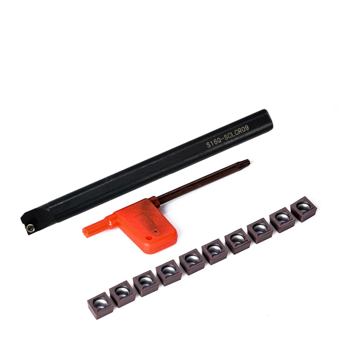 Une barre porte-outil pour tour, modèle S18Q-SCLCR09. Diamètre de queue : 18mm. Longueur totale : 180mm. Elle est conçue pour recevoir des inserts de type CCMT09T3 (angle de pointe 95°). Parfaite pour les opérations d’alésage, de dressage, ou de chariotage sur des pièces en acier, inox, etc. Inclus : la barre elle-même + une clé T8 pour le serrage de l’insert. Marque générique, sans numéro de pièce fabricant. Neuf, sous emballage. Le WEEE number est 73327388. Si tu veux usiner des trous précis avec un bon fini, cette barre rigide est un bon choix. Vérifie la compatibilité avec la tourelle de ton tour (queue de 18mm). Pense à bien serrer l’insert et à régler la hauteur d’outil. Pour plus de détails techniques, consulte l’annonce. Un outil essentiel pour l’atelier !
