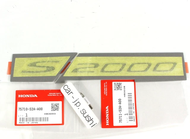 Pour les propriétaires de Honda S2000 (AP1 ou AP2) qui veulent remplacer leurs badges d'origine usés ou manquants. Ce set comprend les deux emblèmes latéraux pour les ailes avant : celui avec le logo « HONDA » et celui avec le modèle « S2000 ». Ce sont des pièces authentiques Honda, neuves, fabriquées au Japon. Les références OEM sont 75710-S2A-000 et 75711-S2A-000 (ou variantes). Parfait pour une restauration ou pour un look neuf et propre. L'installation nécessite généralement de coller ou de clipser sur les emplacements prévus. Un must pour garder votre roadster japonais iconique fidèle à l'origine. Vérifiez la couleur (chrome probable) et assurez-vous que c'est bien la bonne référence pour votre année.