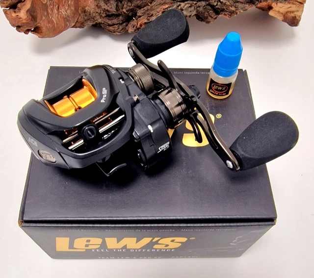 Les pêcheurs de bass (black-bass) vont adorer ce moulinet casting Lew's Team Pro SP ! Récupération main gauche (modèle PSP1SHL). Ratio de vitesse : 7.5:1, pour ramener vite votre leurre. Frein puissant : jusqu'à 20 lb de drag. Poids léger : 6 oz (environ 170g). Cadre en aluminium, 9 roulements à billes. Capacité : 20 lb/40 yards (ligne mono) ou 50 lb/40 yards (braid). Récupération de ligne : 30 pouces par tour. Neuf, dans son emballage d'origine. Marque Lew's, une valeur sûre. Couleur noire, profil bas. Parfait pour la pêche en eau douce, surtout aux leurres souples, crankbaits, ou spinnerbaits. Précision et solidité au rendez-vous. Un moulinet pro à un prix abordable pour les pêcheurs réguliers qui veulent de la performance.