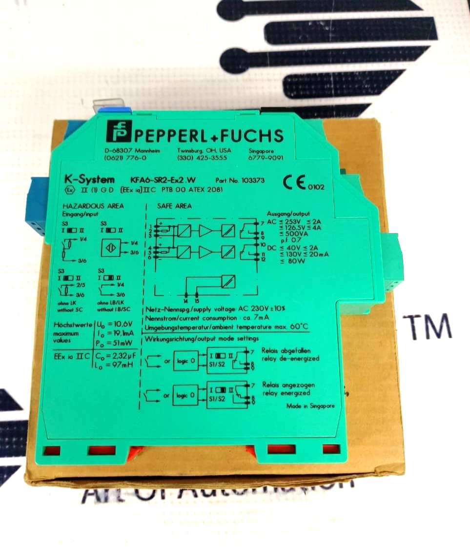Dans un environnement industriel avec risque d'explosion (zones ATEX), chaque composant doit être certifié. Cet interrupteur-amplificateur Pepperl+Fuchs, modèle KFA6-SR2-Ex2.W, est conçu pour ça. Il permet de traiter le signal d'un capteur situé en zone dangereuse et de le transmettre en toute sécurité vers l'automate en zone sécurisée. C'est une pièce cruciale pour les chaînes de mesure et de contrôle dans la pétrochimie, la pharma, ou les industries des poudres. Il est neuf, d'origine, dans son emballage. La marque Pepperl+Fuchs est une référence mondiale en instrumentation de sécurité. Si tu as besoin de remplacer ce modèle précis sur ton installation, c'est la pièce exacte qu'il te faut. Vérifie bien la référence et les spécifications techniques avant commande.