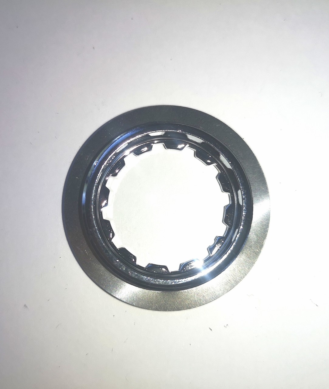 Salut les cyclistes et mécanos ! Voici une bague de verrouillage Shimano Hyperglide pour cassette, 12 dents (12T). En acier chromé, référence SH-11E0100. C'est du 'NOS' (New Old Stock) : une pièce neuve d'origine, stockée depuis un moment, donc sous sachet d'origine mais peut-être sans emballage retail. Compatible avec de nombreuses cassettes Shimano. Essentielle pour bloquer ta cassette sur le corps de roue libre. Si tu remontes une roue, changes une cassette, ou si ta bague actuelle est abîmée, c'est la pièce qu'il te faut. Qualité Shimano, donc fiable. Livraison rapide. Vérifie la compatibilité avec ton modèle de cassette (nombre de vitesses). Une petite pièce, mais cruciale pour que tout tienne bien à l'arrière !