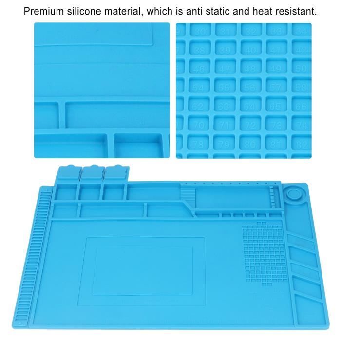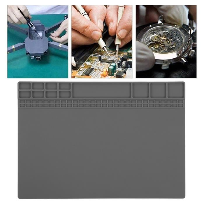 Pour tous les bricoleurs en électronique, les réparateurs de smartphones ou les passionnés de soudure, ce tapis de travail en silicone est un essentiel. Il résiste aux hautes températures (jusqu'à plusieurs centaines de degrés), protège votre table des projections de soudure, des égratignures et des produits chimiques. Il offre aussi une surface anti-dérapante pour maintenir les petits composants. Dimensions pratiques, marque non spécifiée, fabriqué en Chine. Neuf dans son emballage. Un accessoire simple, pas cher, mais qui change vraiment la vie quand on travaille sur des circuits imprimés ou des petits objets délicats.