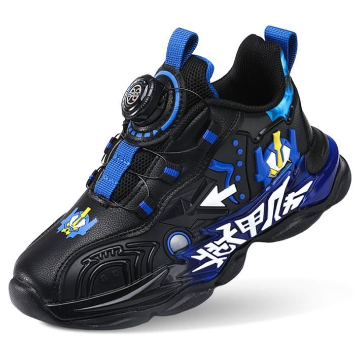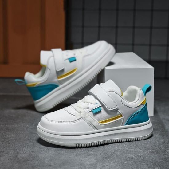 Pour l'école, le parc ou les sorties, ces baskets pour garçons de la marque Route 21 sont parfaites ! Ce sont des chaussures de style casual/sport, très pratiques avec leur fermeture à velcro (scratch) : plus besoin de faire ses lacets, les enfants les mettent et les enlèvent en deux secondes. La tige est en synthétique, la doublure et la semelle intérieure en textile pour le confort, et la semelle extérieure en synthétique pour une bonne adhérence. Elles sont noires, donc passe-partout et faciles à nettoyer. Elles sont neuves avec emballage et étiquettes. Tu dois choisir la pointure UK dans la liste déroulante (pense à bien mesurer le pied de ton enfant). Pas d'infos sur la hauteur de talon ou la forme de la pointe, mais ce sont des chaussures classiques pour un usage quotidien. Parfaites pour les jours d'EPS à l'école ou pour jouer après la classe. Une valeur sûre, simple et robuste.