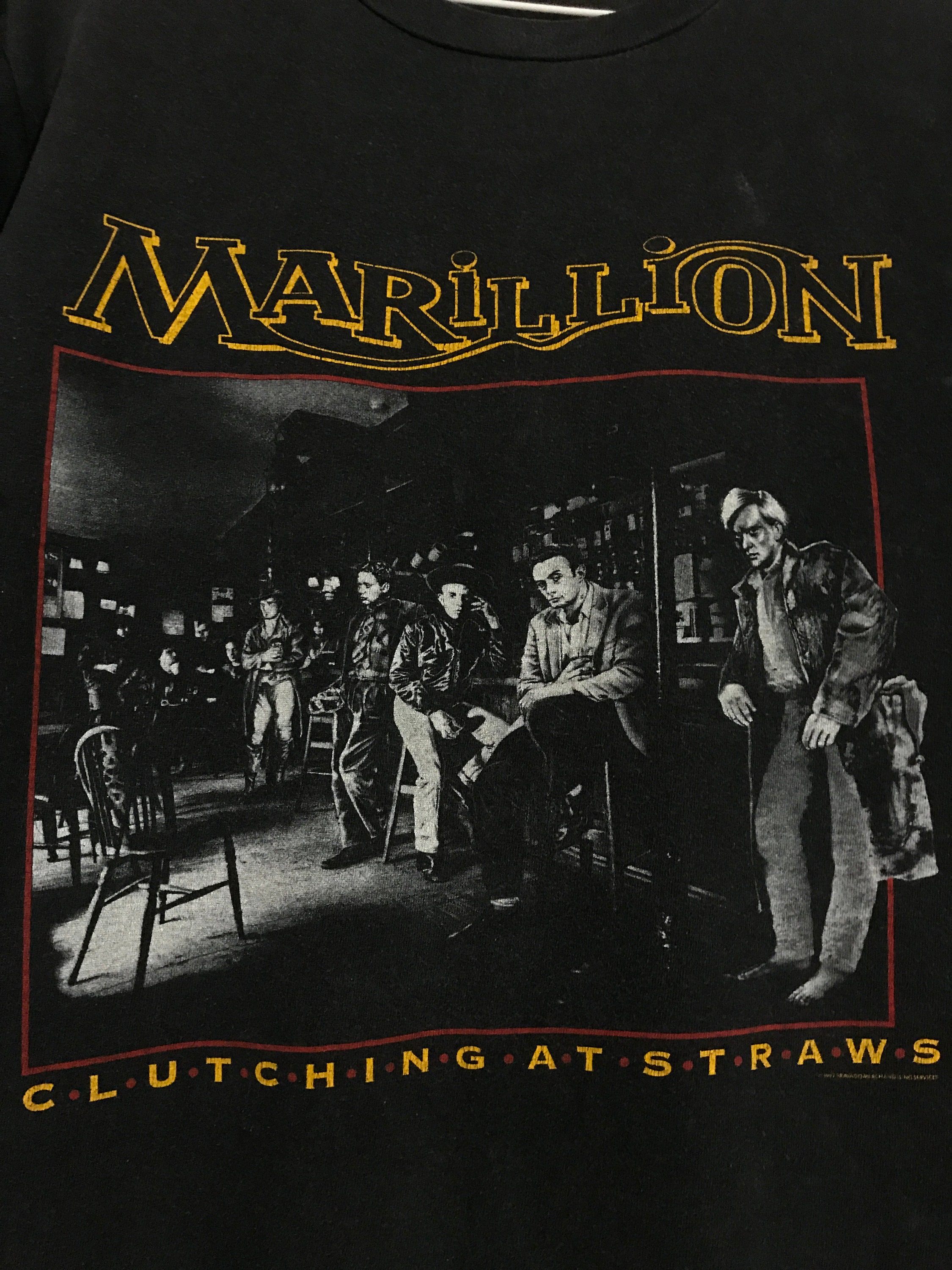 Fan de Marillion ? Ce t-shirt officiel (style) de la tournée 'Clutching at Straws' 1987 est un must ! Couleur noir classique, 100% coton, coupe régulière unisexe. Design rétro avec le visuel de l'époque – parfait pour les concerts, les festivals ou juste au quotidien. Taille disponible pour tous. Neuf avec étiquettes, jamais porté. Fabriqué aux États-Unis. Que tu sois un vieux fan ou que tu découvres le groupe, ce t-shirt est une pièce de collection vestimentaire cool. Confortable, respirant, idéal pour afficher ta passion pour le rock progressif. Livraison rapide.