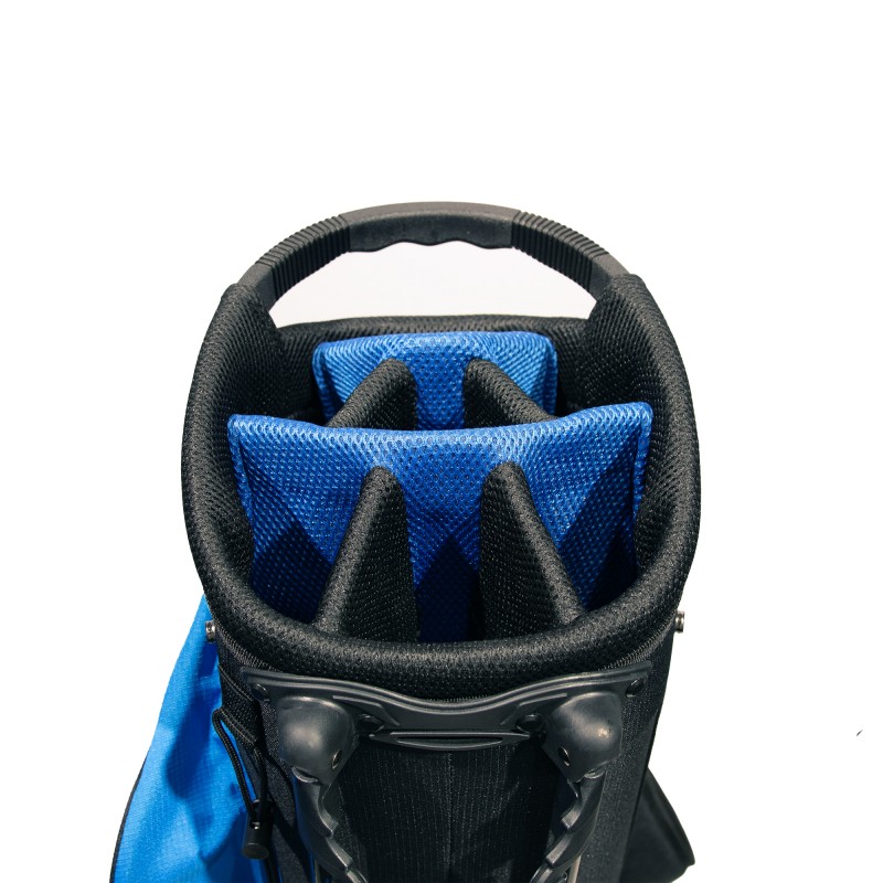 Prêt à dominer le parcours avec style et confort ? Ce sac de golf Callaway de la série Cobra est un stand bag, c'est-à-dire qu'il a un système de pieds intégré qui se déploie pour le poser facilement au sol. Il offre 14 divisions (14-way) pour organiser tous vos clubs sans qu'ils s'entrechoquent. Couleur bleu et noir, design moderne. Il est léger, rembourré au niveau des épaules pour un portage agréable, et résistant à l'eau (water resistant). Avec une sangle d'épaule et une poignée de transport. Neuf, en emballage d'origine. Le compagnon idéal pour vos parties, que vous soyez amateur ou confirmé.