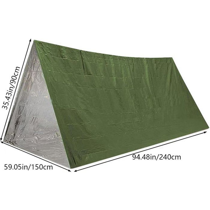 Partez en randonnée ou en camping l'esprit tranquille avec cette tente de survie pour 2 personnes ! C'est un abri d'urgence super léger et compact, parfait à glisser dans votre sac à dos. En cas de mauvais temps, de panne ou si vous devez bivouaquer en vitesse, elle vous protège du vent, du froid (grâce à ses propriétés thermiques) et de la pluie (imperméable). Le kit comprend probablement la tente en forme de tube, une couverture de survie et une corde. Matériau : synthétique résistant. Fabriqué en Chine. Neuf, sous emballage. Idéal pour les randonneurs, les chasseurs, les cyclistes ou juste pour avoir un filet de sécurité dans le coffre de la voiture. Poids plume, montage rapide. Espérons ne jamais en avoir besoin, mais mieux vaut l'avoir sous la main !