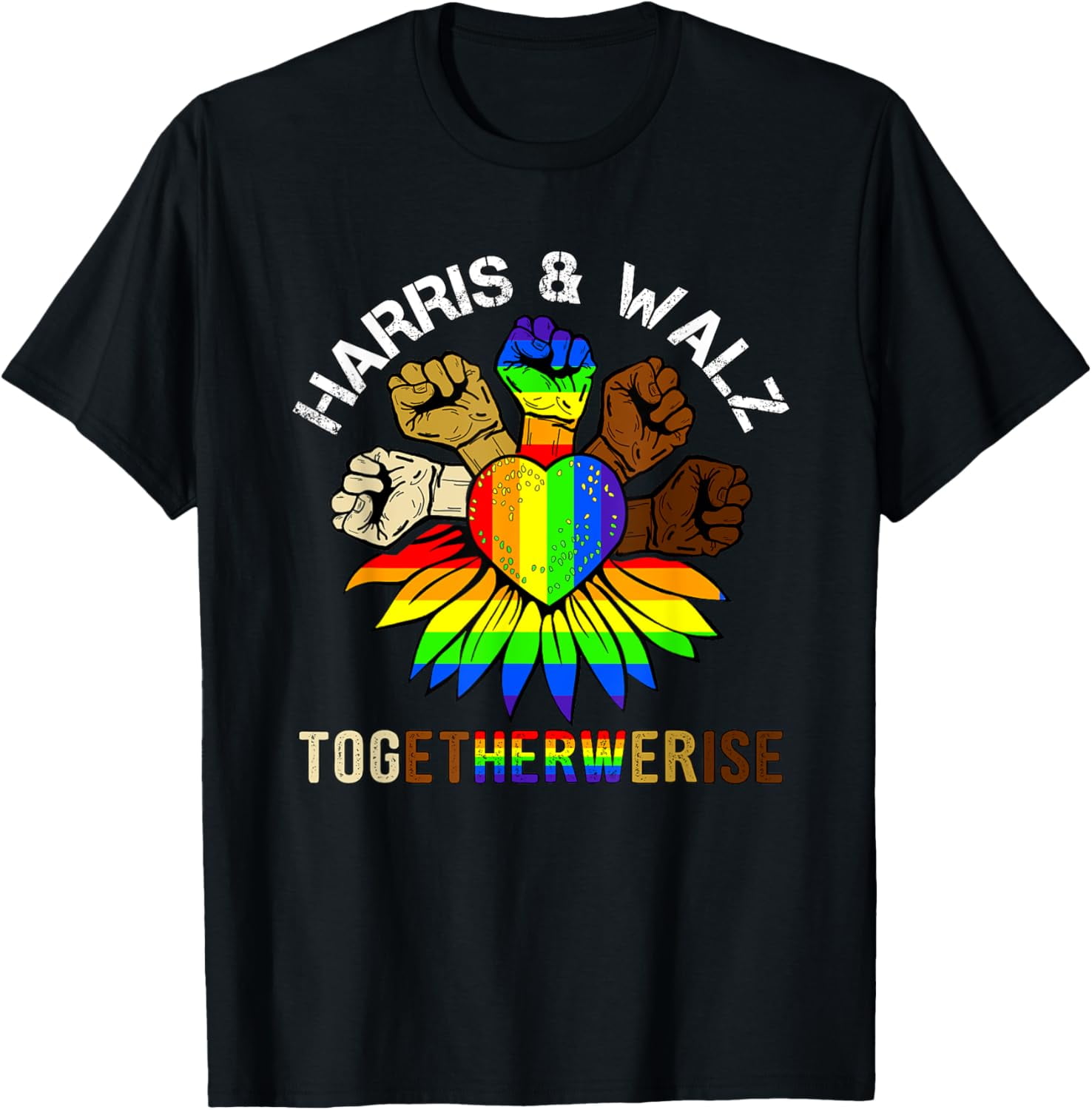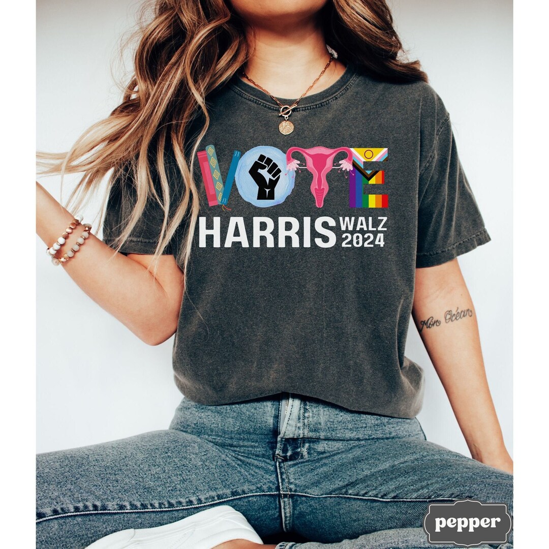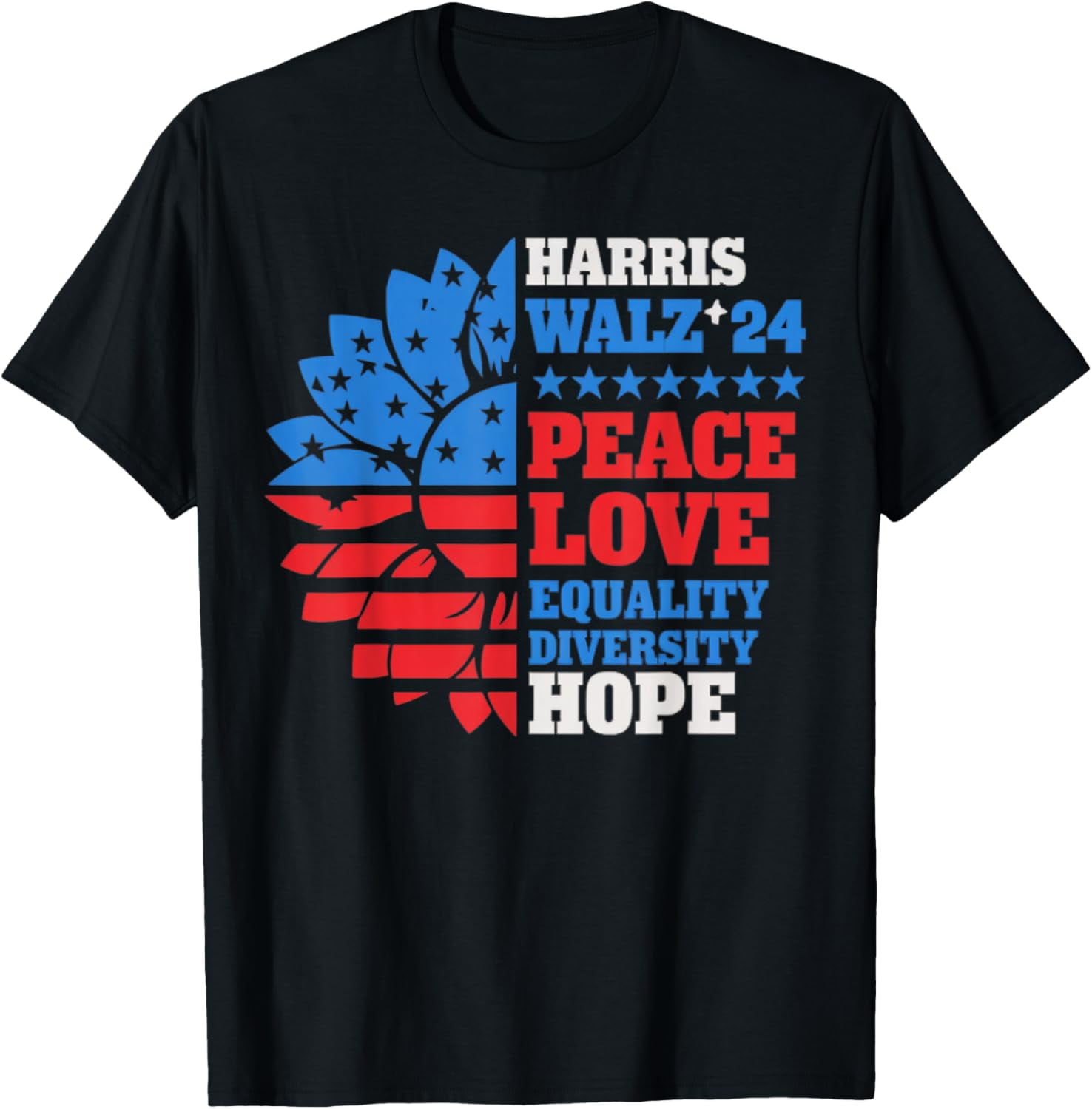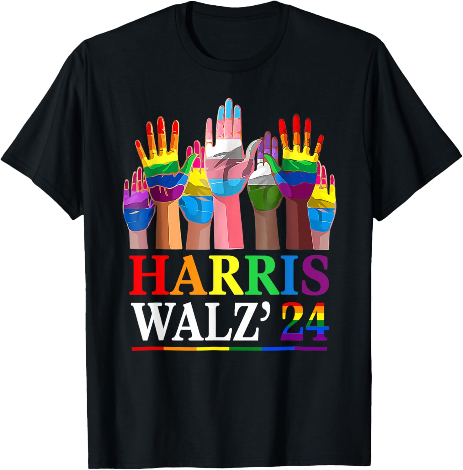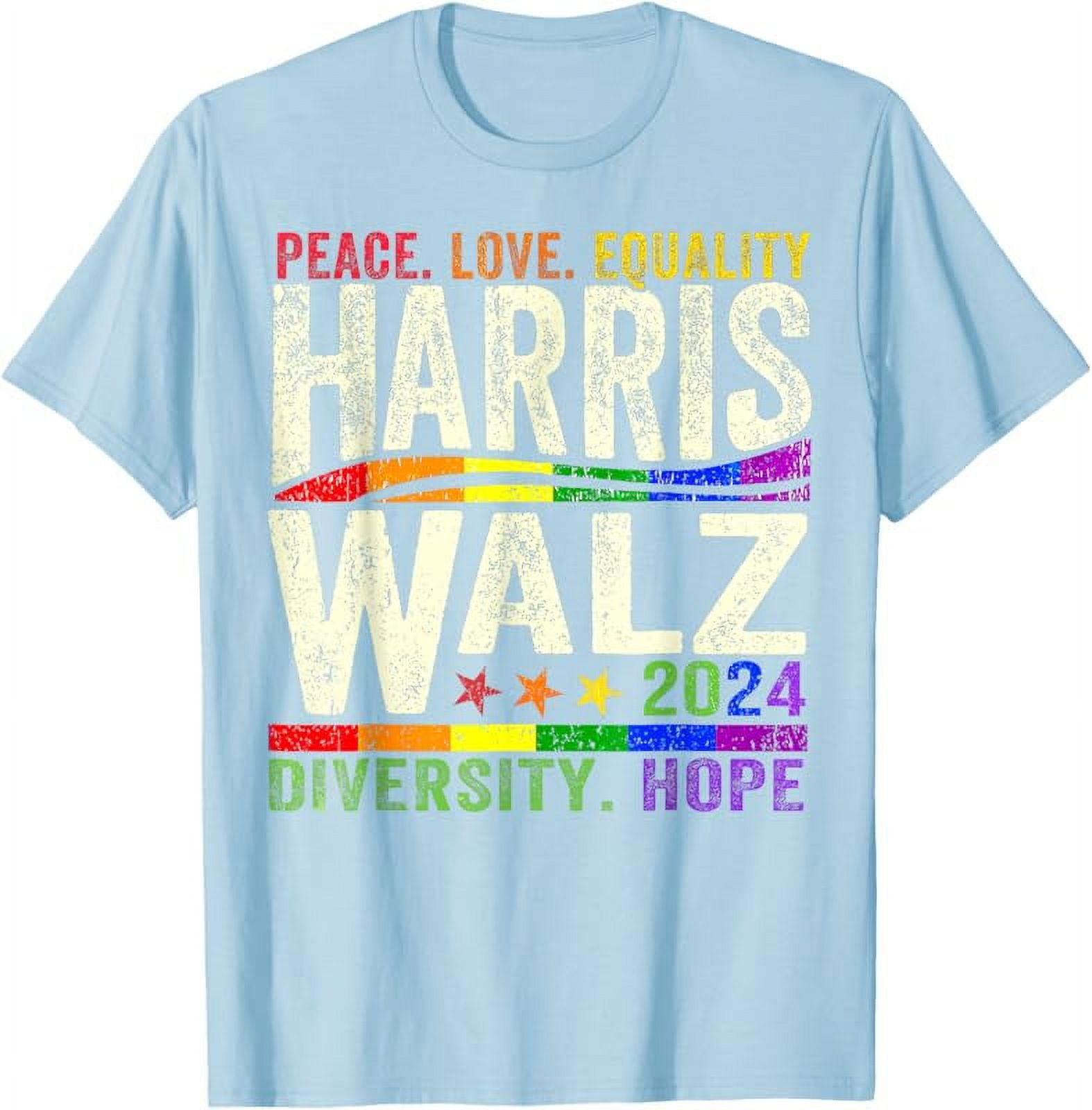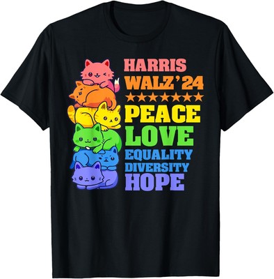 Exprime tes convictions avec ce t-shirt au message politique fort. Il arbore le texte \Harris Walz\ (référence probable à Kamala Harris et à son équipe de campagne) combiné avec un drapeau américain aux couleurs LGBT (arc-en-ciel). C'est un vêtement de soutien aux valeurs libérales/démocrates et à la communauté LGBTQ+. Il est neuf, avec étiquettes. Fabriqué aux États-Unis, fait main, en coton. Coupe regular fit, col rond, manches courtes. Marque Silver Lake T-shirts. Lavable en machine. Parfait pour un rassemblement politique, une marche des fiertés, ou simplement pour porter un message d'inclusion au quotidien. Un vêtement engagé pour ceux qui veulent afficher leurs opinions. Vérifie la disponibilité des tailles. Plus qu'un t-shirt, une déclaration.