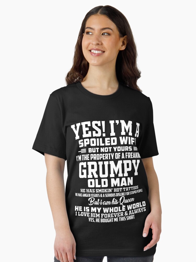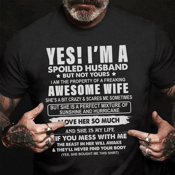 Hello pour un cadeau qui fait rire ou pour afficher votre humour de couple ! Ce t-shirt avec l'inscription Sorry I'm A Spoiled Wife I Have A Freaking Awesome Grumpy Old Man (Désolé, je suis une femme gâtée, j'ai un mari vieux grincheux génial) est trop drôle. Il est neuf, avec étiquettes. En coton doux, coupe regular, col rond, manches courtes. Marque Gildan, qualité correcte. Taille standard pour adulte unisexe. Et le meilleur : il est personnalisable ! Vous pouvez ajouter le surnom de l'époux, le nombre d'enfants et leurs prénoms (exemple : Papa - 2 (Emma, Luke)). Parfait pour un anniversaire de mariage, la Saint-Valentin, ou juste pour une blague entre vous. Une idée originale qui sort de l'ordinaire. Choisissez la taille, personnalisez le texte, et voilà un vêtement unique et plein d'humour !
