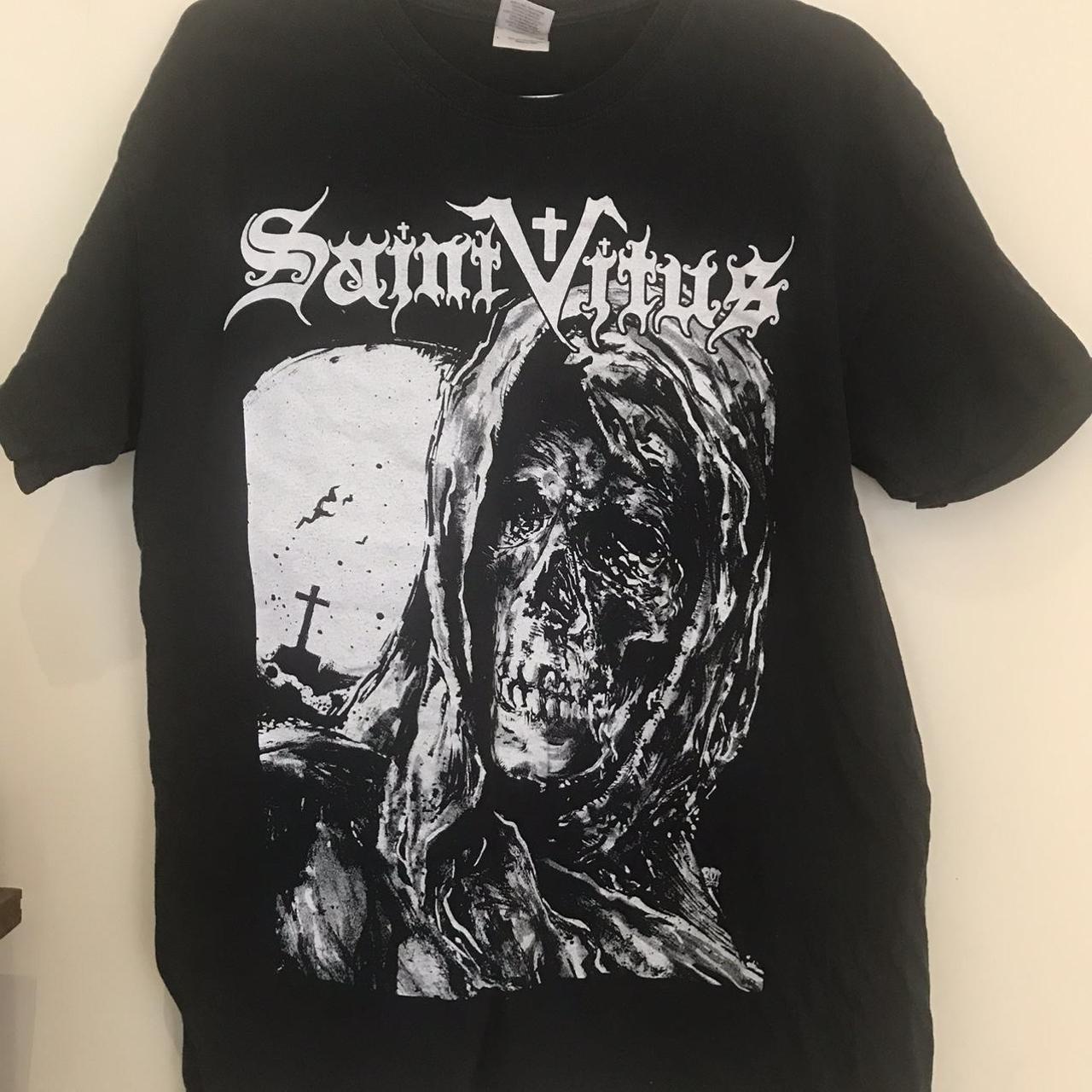 Ce t-shirt Saint Vitus en coton noir est parfait si tu aimes le style rock/metal ou juste un look décontracté. Il est neuf, avec étiquettes, jamais porté. Il est en coton, confortable, avec des manches courtes et une coupe régulière. Le design est le HD91, sobre mais stylé. Il est disponible dans plein de tailles, du S au 5XL, donc tout le monde peut en porter. Marque sans marque (unbranded), mais la qualité est là. Fabriqué aux États-Unis. Idéal pour un concert, un festival, ou juste pour traîner en week-end. Si tu cherches un t-shirt simple, solide, et qui va avec tout, celui-ci est un bon choix. En plus, c'est un super cadeau pour un fan de Saint Vitus ou de musique en général. Lavage en machine, facile d'entretien, et il garde sa forme.