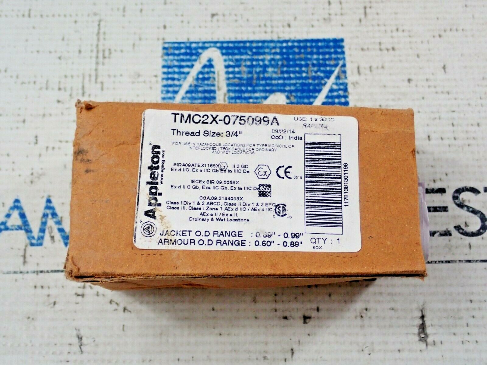 Ce passe-câble (ou \glande\) de type barrière est neuf, dans son emballage d'origine. Il est en aluminium, donc léger et résistant à la corrosion. Le filetage est de type 3/4 NPT, un standard nord-américain pour les raccords étanches. Il est conçu pour faire passer et serrer des câbles dont le diamètre extérieur est compris entre 0.50 et 0.75 pouces. La marque est TMC et la référence précise est TMC2X-075A075X. Fabriqué aux États-Unis, c'est un produit de qualité industrielle, parfait pour les installations électriques dans des environnements difficiles (usines, extérieur, machines). Il assure une bonne étanchéité et maintien du câble. Idéal pour les électriciens, les techniciens en automatisme, ou les bricoleurs qui installent un système de câblage propre et professionnel. Un petit composant qui fait une grande différence dans la finition et la sécurité d'une installation. Vendu à l'unité, comme sur la photo.
