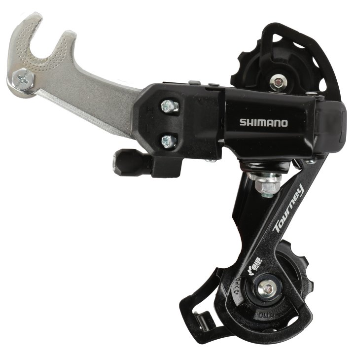 Remettez vos vitesses au point avec ce dérailleur arrière Shimano Tourney RD-TY200 ! C'est un modèle économique et fiable, compatible avec les transmissions 6 ou 7 vitesses. Le montage est de type \Bolt-On\ (fixation directe par boulon), très simple. La cage est de longueur moyenne (GS), adaptée à un large éventail de pignons. Il est en aluminium et métal, de couleur noire. Fabriqué en Australie, il bénéficie d'une garantie d'un an. Compatible avec les VTT, vélos de route et même les mini-vélos. Parfait pour remplacer un vieux dérailleur usé ou cassé, et retrouver un passage de vitesses précis et fluide. Le produit est neuf dans son emballage d'origine. Une pièce essentielle pour l'entretien courant de votre bicyclette.