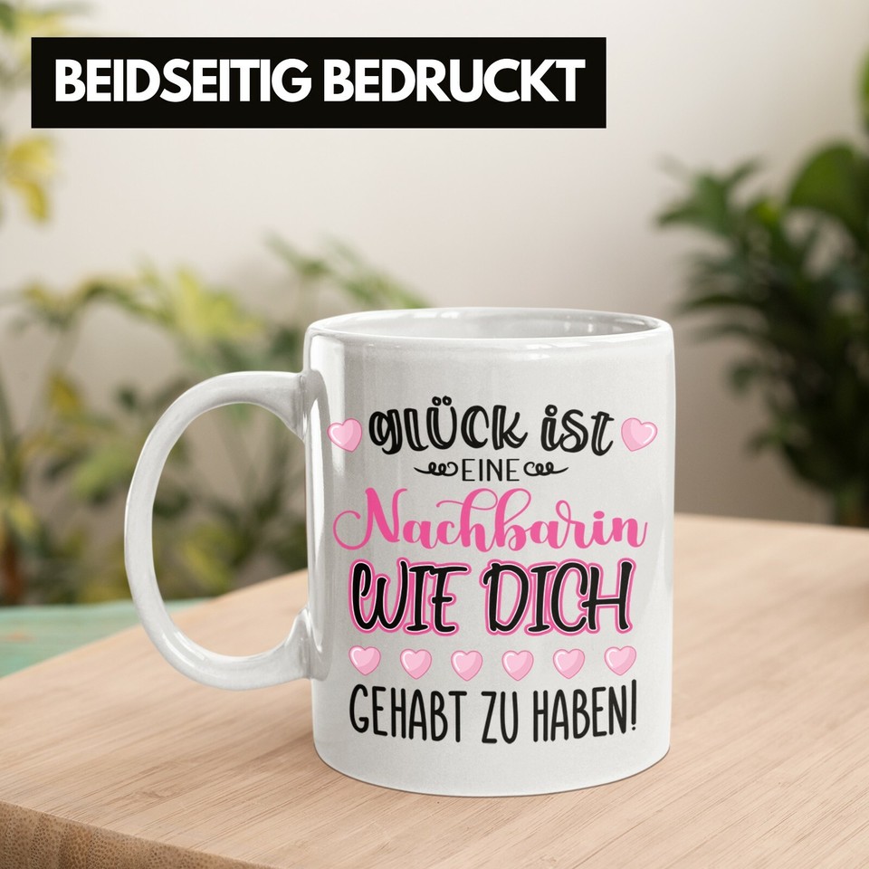 Coucou ! Une tasse trop mignonne et drôle pour dire au revoir à ta voisine préférée. Marque Trendation, modèle 03/905. En céramique, passe au lave-vaisselle et au micro-ondes, adaptée aux boissons chaudes. Thème : cadeau de départ, humour, voisine, anniversaire. Inscrit “Abschied Beste Nachbarin” – un petit mot touchant pour un départ. Livrée neuve dans sa boîte, parfaite pour un cadeau simple et personnalisé. Tu peux l’offrir avec un petit mot ou un cadeau complémentaire. Super idée pour marquer le coup quand une voisine sympa déménage. On a d’autres modèles de tasses humour et tendresse aussi ! ☕