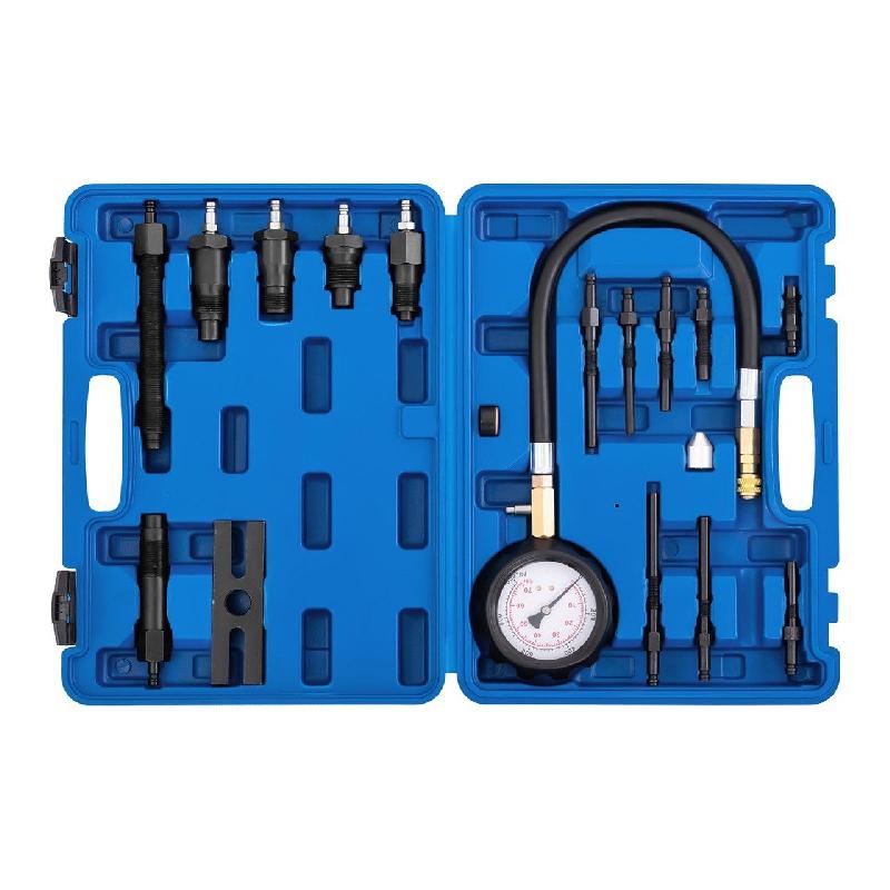 Tu suspectes une perte de compression sur ton moteur diesel ? Ce testeur de compression WilTec est l'outil qu'il te faut. Il mesure une plage de 0 à 70 bars (soit 0 à 1000 psi), avec un manomètre clair et robuste. Il est neuf, jamais utilisé, et vendu dans son emballage d'origine. Parfait pour diagnostiquer les problèmes de cylindres, de segments ou de soupapes sur les voitures, camionnettes, bateaux ou générateurs diesel. Référence MPN 51292, EAN 4250390880973. Pèse environ 2,1 kg – il est costaud. L'utilisation est simple : on le visse à la place de la bougie de préchauffage et on lance le démarreur. Un investissement intelligent pour les garagistes, les agriculteurs ou les bricoleurs avertis qui veulent éviter des réparations coûteuses. Diagnostique avec précision !