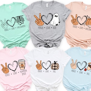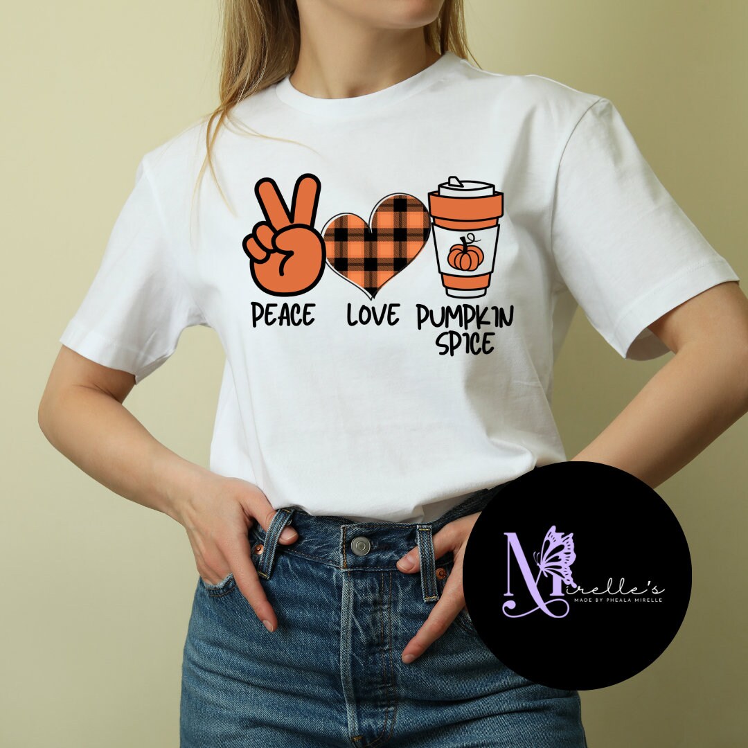Célébrez la saison d'automne et Halloween avec style avec ce t-shirt \Peace Love Pumpkin Spice\ ! Il est neuf avec étiquettes, en coton 100% confortable, coupe régulière unisexe. Le design imprimé associe des éléments d'automne (citrouille, épices) avec un message peace & love, et une représentation de Jésus Christ, créant un look unique et conversationnel. Parfait pour les amateurs de thématiques festives, pour une soirée d'Halloween, ou simplement pour afficher votre amour de l'automne au quotidien. Fabriqué aux États-Unis par High Desert Tees. Manches courtes, col rond. Lavable en machine. Un cadeau original pour un ami ou pour vous-même. Portez-le avec un jean et une veste en jean pour un look casual et cool !
