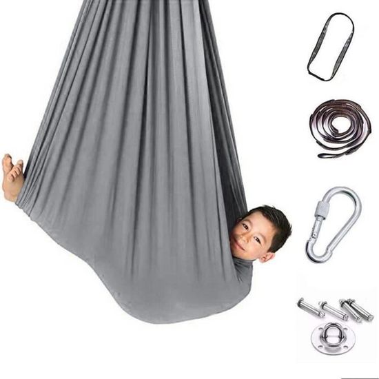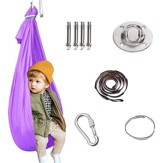 Coucou les parents et les amateurs de détente ! Cette balançoire hamac thérapeutique est un vrai bonheur pour les petits et les grands.\n\nAvec ses dimensions généreuses (230 x 150 cm), en nylon résistant, elle peut accueillir un enfant (ou un adulte léger) pour des moments de balancement apaisant. La particularité ? Elle tourne à 360° – donc on peut se balancer, tourner, s’enrouler… Un vrai jeu sensoriel et moteur.\n\nIdéale pour le jardin, la terrasse, une chambre d’enfant spacieuse, ou même en intérieur si tu as un point de fixation solide (poutre, portique). Elle favorise la relaxation, la coordination, et peut être utilisée en outil thérapeutique doux pour les enfants ayant besoin de stimulation vestibulaire.\n\nElle est neuve, dans son emballage d’origine, marque sans marque (markenlos). EAN 3870816380521.\n\nParfaite pour créer un coin calme, pour le jeu libre, ou pour simplement lire un livre en se balançant doucement. Un investissement en bien-être et en amusement pour toute la famille. Accroche-la et laisse-toi porter !