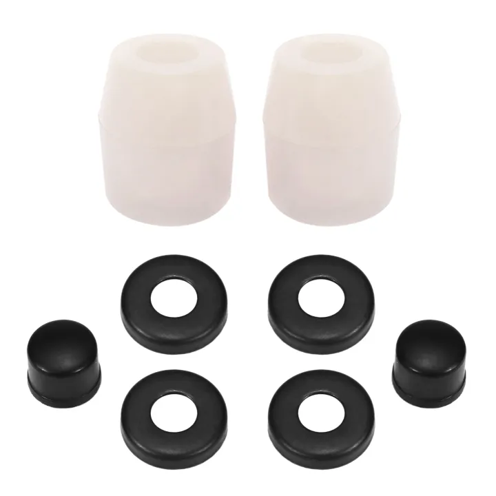 Vos trucks de skate sont usés, trop mous ou grinçants ? Ce kit de rébuild complet contient tout ce qu'il faut pour restaurer 4 trucks (soit 2 skateboards) : des bushings (gommes d'élasticité), des rondelles, des cups pivot (coussinets de pivot) et probablement des pads amortisseurs. Marque générique. Remplacez ces pièces d'usure pour retrouver une conduite précise, réactive et silencieuse. Adaptation facile avec une clé allen. Essentiel pour les riders qui veulent entretenir leur matériel et optimiser leurs performances. Un kit économique comparé à l'achat de trucks neufs. Parfait pour les débutants comme pour les confirmés. Donnez une seconde vie à votre planche ! Livré neuf.