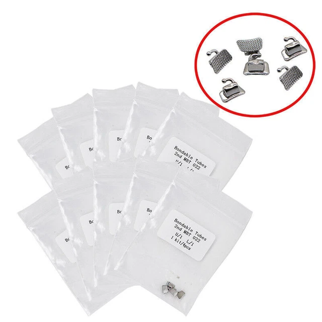 Destiné aux professionnels de l'orthodontie et aux laboratoires dentaires ! Ce lot contient 50 tubes buccaux orthodontiques, conçus pour les premières molaires. Ils suivent le système MBT (technique McLaughlin, Bennett, Trevisi) avec une gorge de .022 pouces, une dimension standard très répandue. Ces tubes sont en métal, offrant robustesse et durabilité pendant le traitement. Ils sont de type \collable\, prêts à être scellés directement sur la dent. Le modèle est BTM0221. C'est un produit neuf, non modifié, vendu dans son conditionnement d'origine. Idéal pour renouveler votre stock de consommables. Fabriqué en Chine, il répond aux besoins des cabinets et labos pour des traitements précis et efficaces. La marque est non spécifiée (générique), mais la qualité est adaptée à un usage professionnel. Permet de gagner du temps et d'économiser sur l'achat de pièces détachées. Vérifiez bien la compatibilité avec votre protocole MBT et la taille de gorge (.022) avant commande.